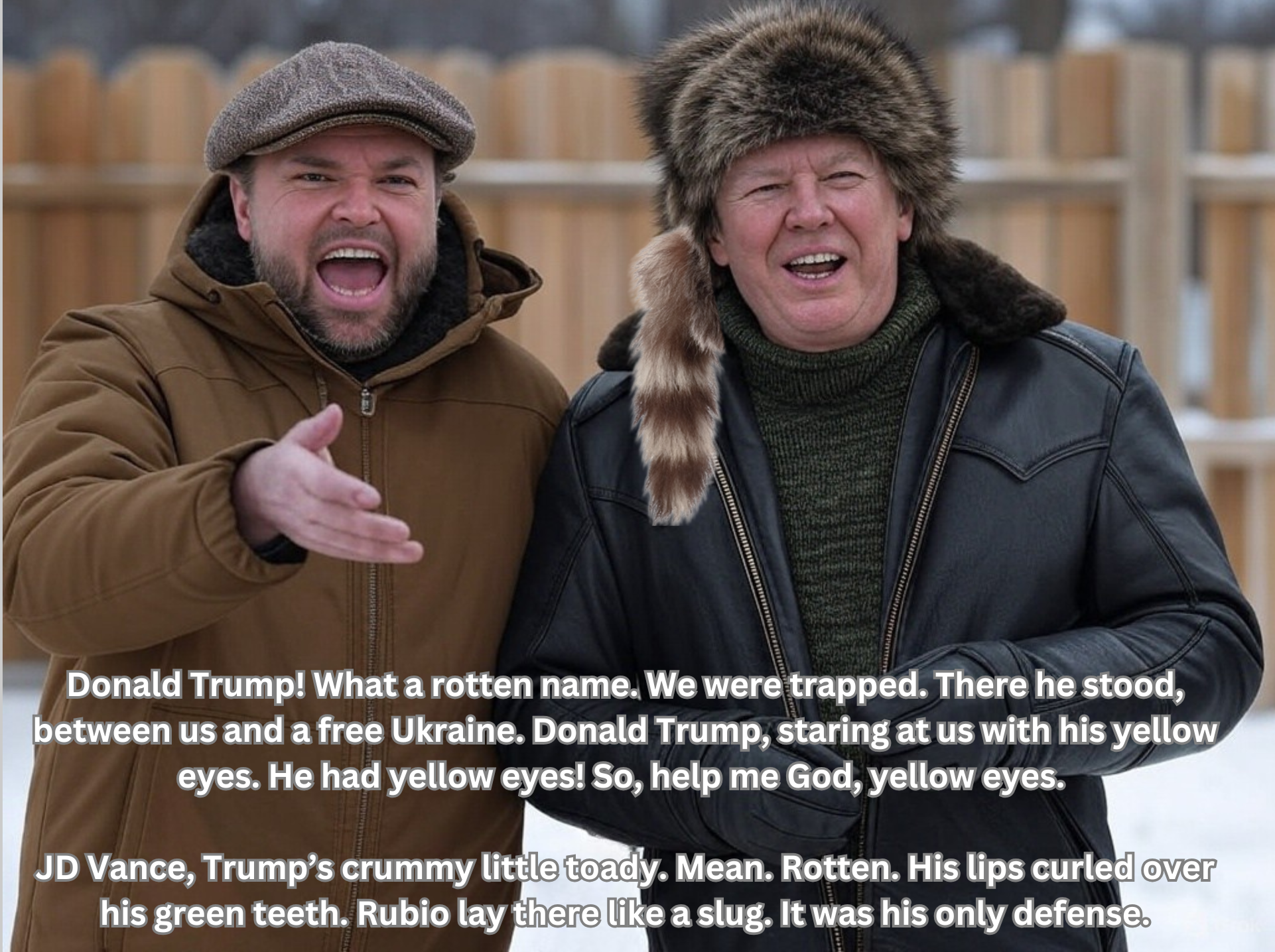 Just like many of you, I was enraged by what I saw in the Oval Office last week. Trump is a bully and Vance his toady. So, I wondered what it would be like if they were in a Christmas Story and whipped this up this morning.